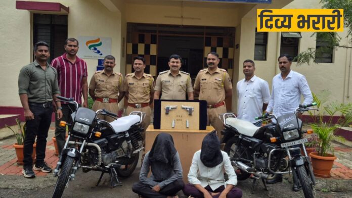 दोघांकडे शस्त्र परवाना नसताना बेकायदेशीररीत्या गावठी पिस्तुल आणि काडतुसे ठेवलेली आढळली. मध्यरात्री ३ वाजता आरोपींना अटक करण्यात आली असून, पुढील तपास उपनिरीक्षक नामदेव बोरकर करीत आहेत.