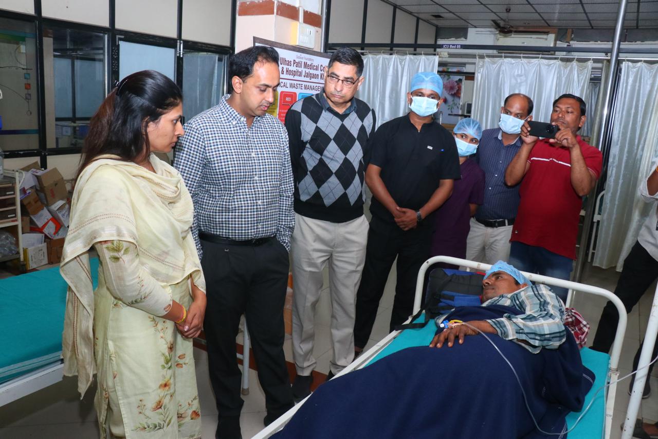 काल झालेल्या दुर्घटनेत जखमी झालेल्यांवर पाचोरा येथील वृंदावन हॉस्पिटल व विघ्नहर्ता रुग्णालय येथे उपचार करण्यात आले होते. त्यानंतर सर्व नऊ जखमींना गोदावरी हॉस्पिटलमध्ये हलवण्यात आले. जखमींच्या आरोग्याची संपूर्ण काळजी घेत असल्याचे डॉ. केतकी पाटील यांनी केंद्रीय राज्यमंत्री रक्षा खडसे यांना सांगितले.
