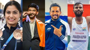 डी गुकेश (बुद्धिबळ) हरमनप्रीत सिंग (हॉकी)प्रवीण कुमार (पॅरा ॲथलेटिक्स) मनू भाकर (शूटिंग