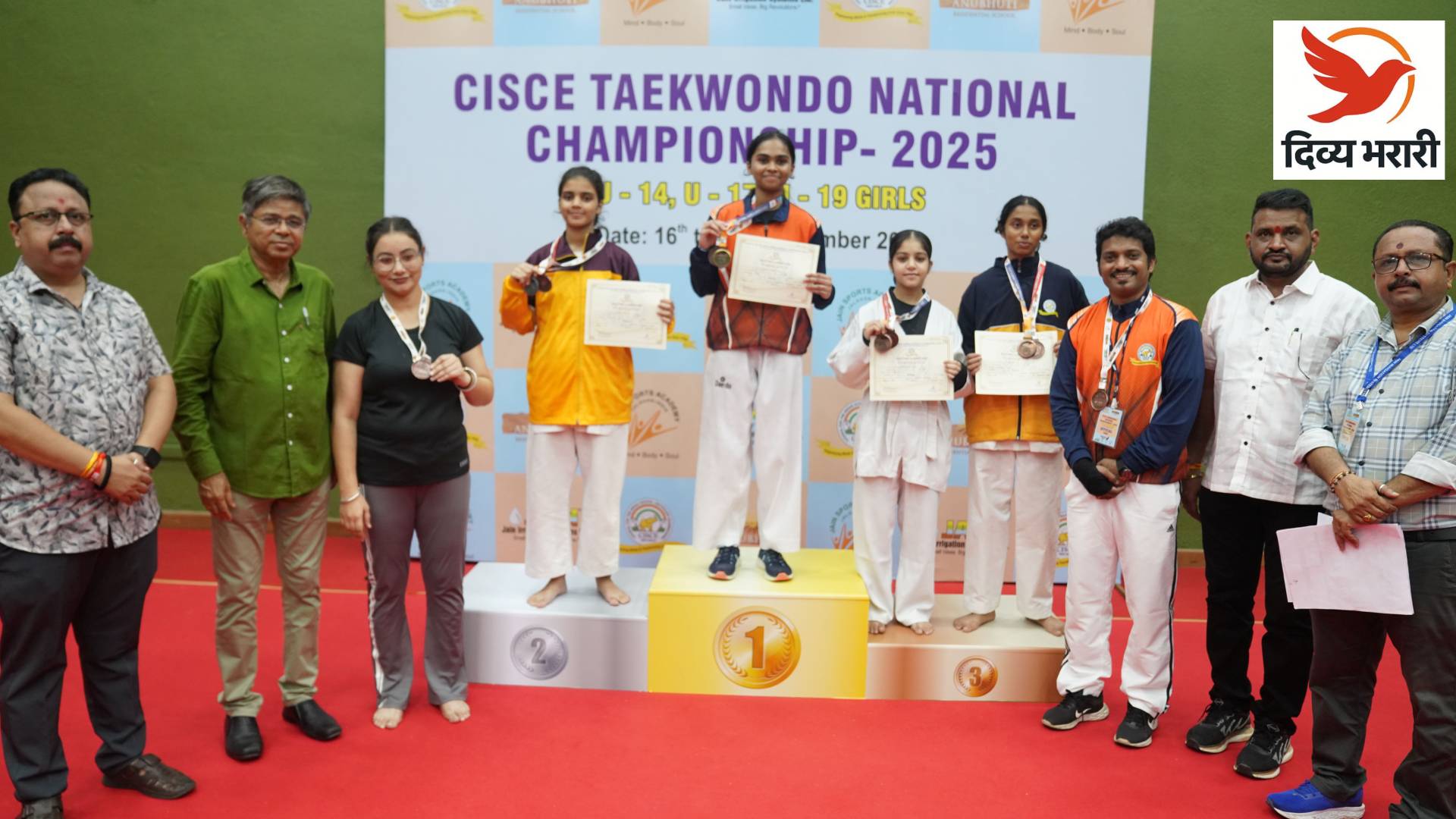 जळगाव प्रतिनिधी – सीआयएससीई सहाव्या राष्ट्रीय तायक्वांडो स्पर्धेत आजच्या सलामीच्या पहिल्या दिवशी महाराष्ट्रातील खेळाडूंनी आघाडी घेत ११ पदके मिळाले. ५ सुवर्ण, २ रौप्य आणि ४ कांस्य पदकांची कमाई केली. त्यात जळगावच्या अनुभूती स्कूलच्या विद्यार्थिनींनी पहिल्याच दिवशी तीन पदके मिळवून आपला ठसा उमटवीत महाराष्ट्राच्या वर्चस्वात मोलाची कामगिरी केली. १८ सप्टेंबर रोजी उर्वरित गटातील सामने आणि पारिषोतिक वितरण समारंभ होणार आहे.