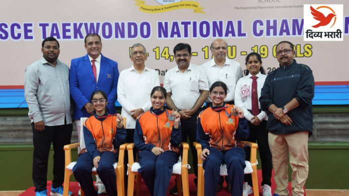 जळगाव (क्रीडा प्रतिनिधी) – सीआयएससीई सहाव्या राष्ट्रीय तायक्वांडो स्पर्धेत महाराष्ट्रातील खेळाडूंनी आघाडी घेत एकूण १९ पदके पटकवली. त्यात १० सुवर्ण, ४ रौप्य आणि ९ कांस्य पदकांचा समावेश आहे. विशेष म्हणजे स्पर्धेचे आयोजक असलेल्या जळगावच्या अनुभूती स्कूलच्या तीन विद्यार्थीनींनी पदके मिळवत महाराष्ट्राच्या वर्चस्वात मोलाची कामगिरी बजावली. विजेत्या खेळाडूंना जैन उद्योग समूहाचे अध्यक्ष अशोक जैन, जिल्हा क्रीडा अधिकारी रवींद्र नाईक, अनुभूती स्कूलचे प्राचार्य देबासीस दास, आंतरराष्ट्रीय पंच ए. टी. राजीव यांच्या हस्ते पदके प्रदान करण्यात आली.