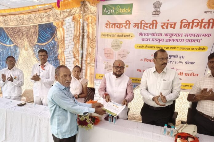 जळगाव (प्रतिनिधी) ‘अग्रिस्टेक’ च्या माध्यमातून मिळणाऱ्या ओळखपत्रामुळे शेतकऱ्यांच्या शासकीय योजनांचा लाभ घेण्यासाठी त्यांना सुलभता मिळेल. या उपक्रमामुळे शेतकऱ्यांचा आत्मविश्वास व सक्षमता वाढणार असून शेतकऱ्यांच्या सक्षमीकरणासाठी सरकार वचनबद्ध आहे.कृषी क्षेत्राला आधुनिक तंत्रज्ञानाशी जोडण्याच्या दृष्टीने ‘अ‍ॅग्रिस्टॅक’ योजना प्रभावीपणे राबविली जात आहे. शेतकऱ्यांचे ओळखपत्र हे त्यांना शासकीय योजनांचा लाभ देण्यासाठी महत्त्वाचे पाऊल आहे,” असे प्रतिपादन राज्याचे पाणीपुरवठा व स्वच्छता मंत्री आणि जिल्ह्याचे पालकमंत्री गुलाबराव पाटील यांनी केले. मुसळी बु, तालुका धरणगाव येथे आयोजित कार्यक्रमाप्रसंगी बोलतं होते.