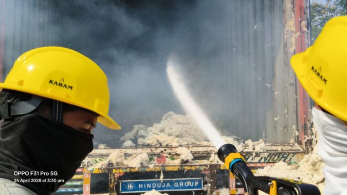 मिळालेल्या माहितीनुसार, मॅक्स टेक्सकेम या कंपनीसाठी कपाशीच्या गाठी घेऊन जाणाऱ्या कंटेनरला (क्रमांक: HR 67 E 1873) अचानक आग लागली. दुपारी २:१३ वाजेच्या सुमारास डॉ. पल्लवी राणे यांनी या घटनेची माहिती अग्निशमन दलाला दिली. या कंटेनरमधील माल केतन चंद्रकांत राणे यांच्या मालकीच्या कंपनीचा होता. भररस्त्यात कंटेनरमधून धूर आणि आगीच्या ज्वाळा निघू लागल्याने परिसरात एकच खळबळ उडाली होती.