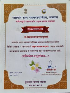 उत्कृष्ट कामगिरीबद्दल सन्मानपत्र; जळगावकरांकडून कौतुकाचा वर्षाव